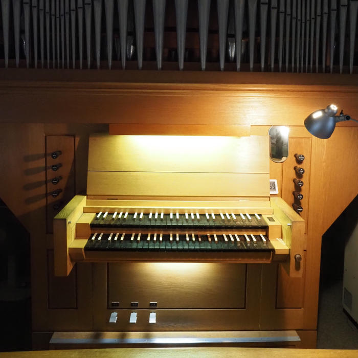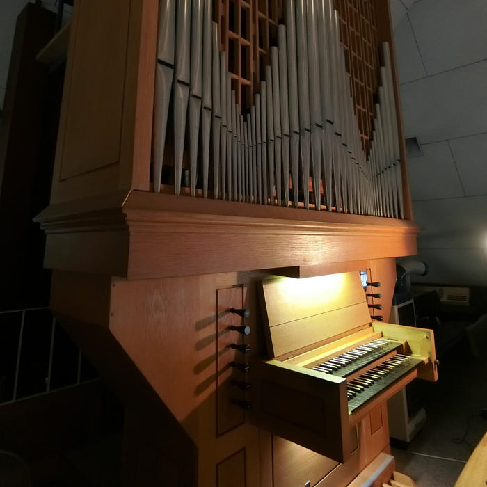 ドイツ・クライス社製で2段の手鍵盤とペダルを持ち、バッハなどのドイツバロックの作品の演奏に適した11の音栓(ストップ)を備えています。毎日曜日の主日礼拝に使われるほか、50回にも及ぶチャペルコンサートで多くの聴衆に親しまれ愛されています。 -