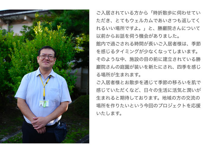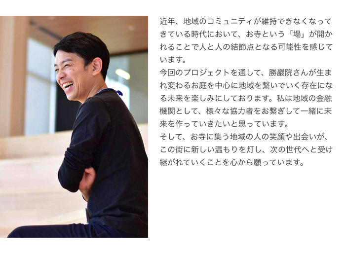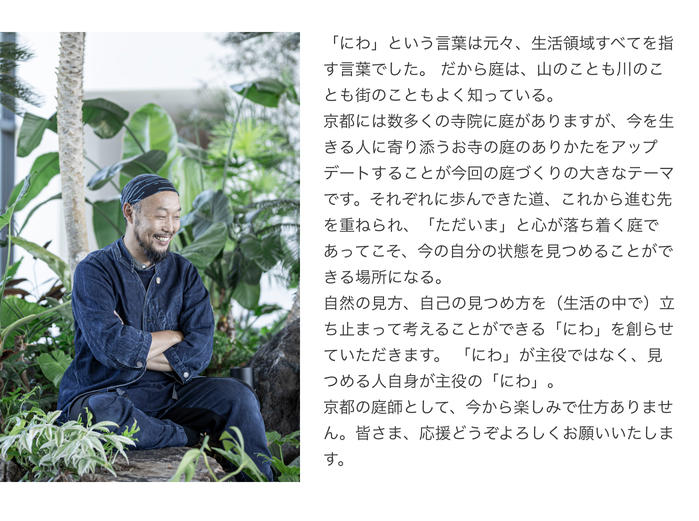 - 方法は異なりますが、このたびクラウドファンディングという新しい寄り合いのかたちを用いて、みんなのお寺のための「みんなの庭」をつくる機会になることを願います。